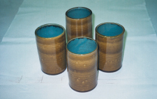 StonewareTumblers Interior: Turquoise Blue Matt Exterior: Tobacco 5" h x 3" dia Commissioned by Paul Hunting, September 2002