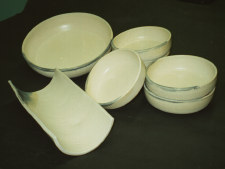 Pasta Serving Bowl, 6 individual bowls and Bread Server Porcelain - 3 glazes Commissioned by Susan West and Tom Ludwig 2003