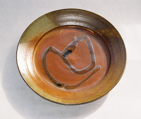 Stoneware Plate - Shino glaze with Tenmoku glaze poured design Fired in reduction to Cone 10